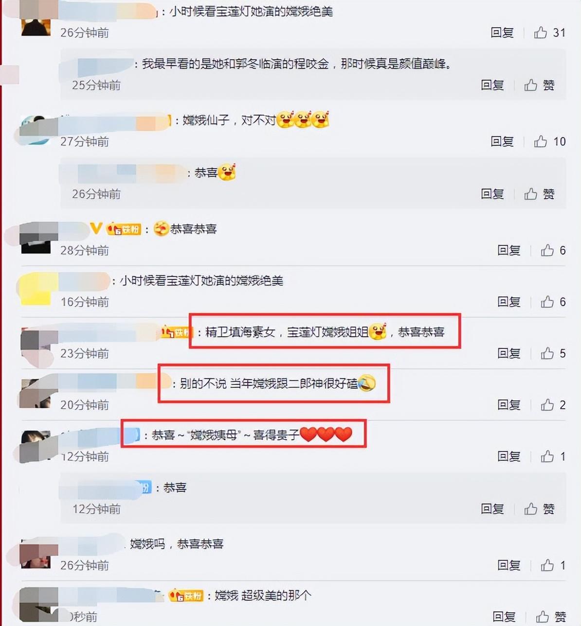 颜丹晨在社交平台跟大家报喜,网友们纷纷为“嫦娥仙子”送上祝福。