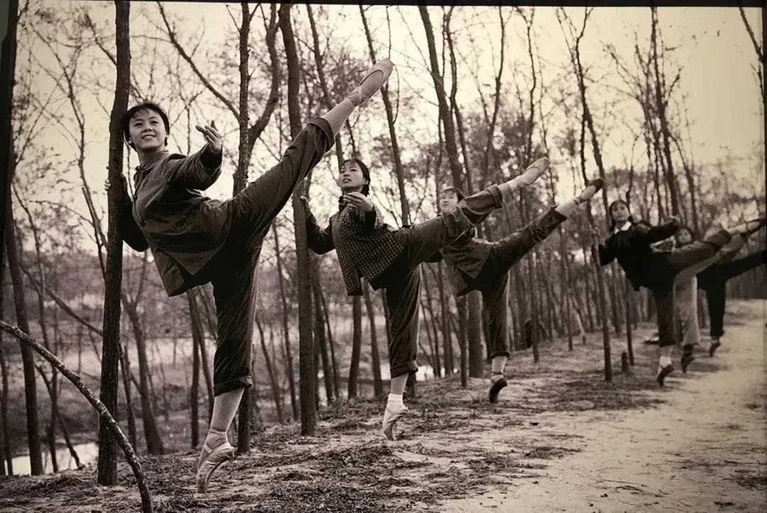 (1972年秋,上海市舞蹈学校《白毛女》剧组的演员们来到上海市郊参加劳动锻炼期间坚持练功)