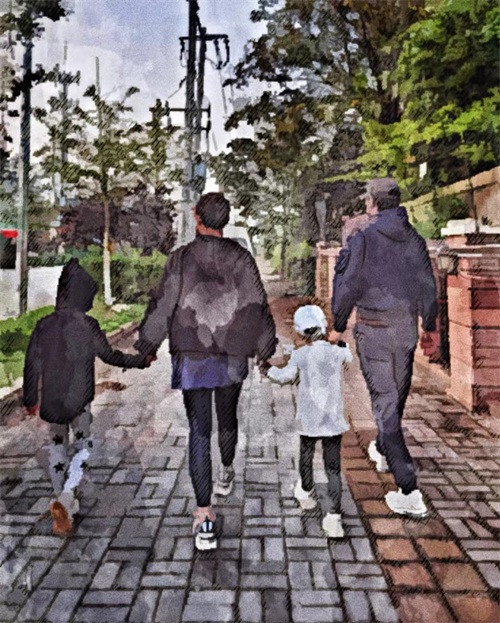 而第二张则是李佳牵着两个儿子的亲子照,其中大儿子的身高已经到李佳的胸口,小儿子的身高也到了妈妈的腰部。要知道,李佳的身高可是接近一米七。