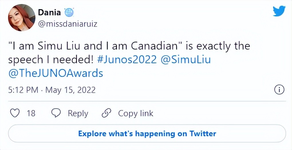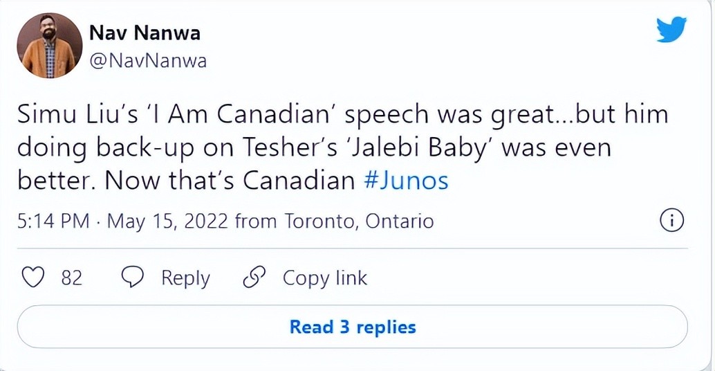 近年来爆红的华裔演员、漫威“超级英雄”刘思慕(Simu Liu)周日晚上主持了朱诺奖(JUNO Awards)这一加拿大娱乐圈的盛事,他激动人心的演讲使他成为了加拿大人的终极代言人。