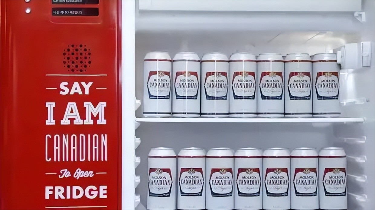 2015年国庆,Molson Canadian的爱国营销团队又玩儿出了新花样。这款冰箱可以识别40多种不同语言,如果有人可以用至少六种语言对冰箱说“我是加拿大人”,这台冰箱便会自动解锁任由你畅饮全部啤酒。