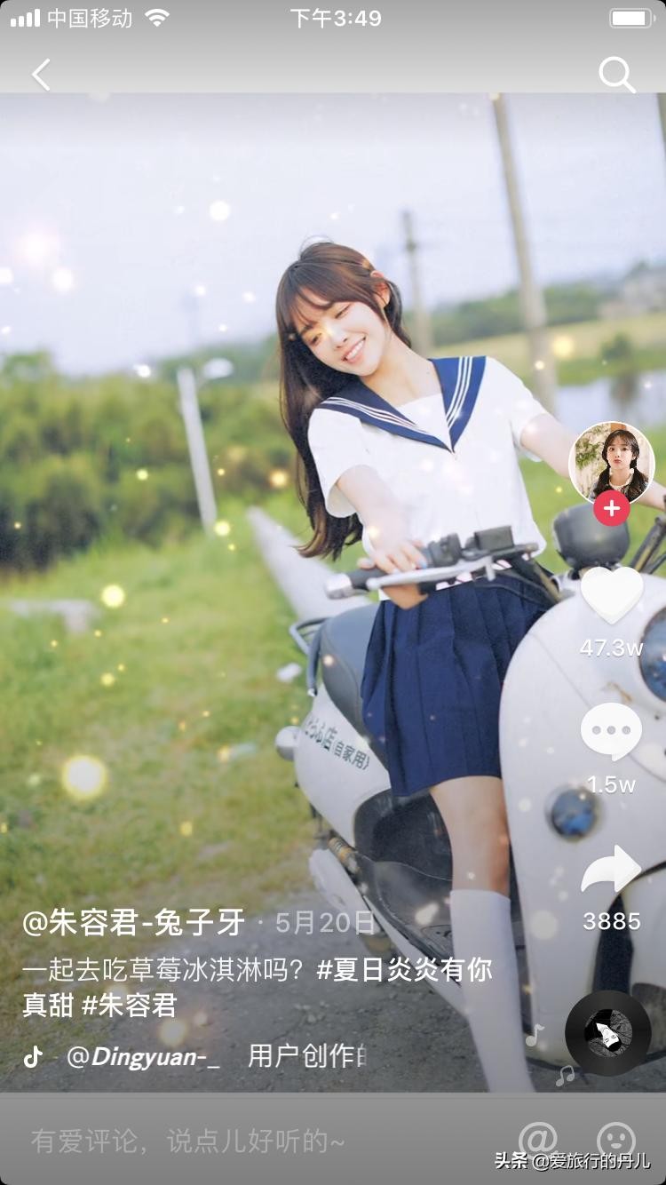 一身校服的朱容君,骑着电瓶车,真是学院风满满!水手服,白色及膝袜,满满的日系风,青春又减龄!笑容灿烂又可爱!你心动了吗?