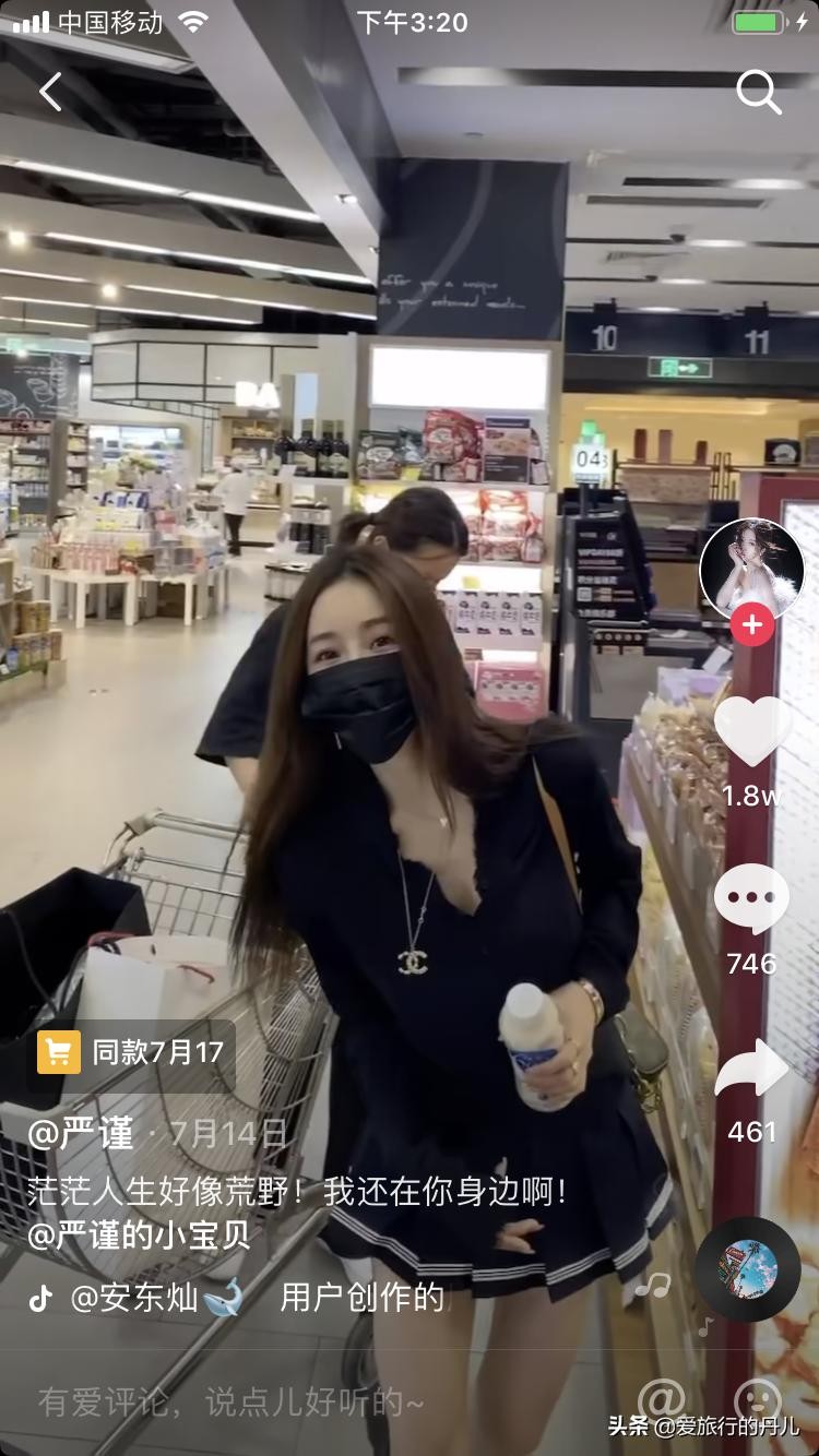 小黑裙是每个女生衣橱必备的时尚单品。穿着小黑裙逛超市的严谨小美女,青春靓丽,活力四射啊!