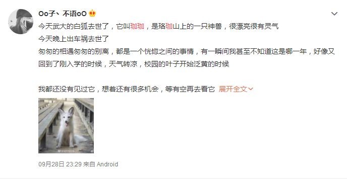 痛心!那只火遍全国的武大“网红”小白狐昨晚离世