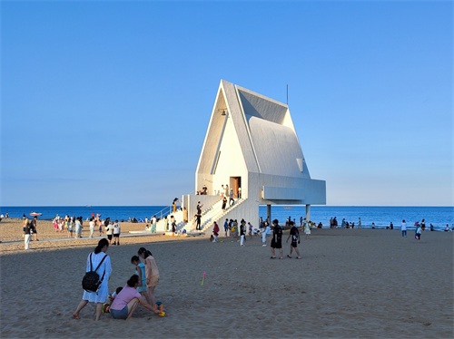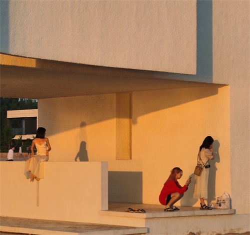看似平淡无奇的“阿那亚礼堂”,在不同的光影下变幻莫测