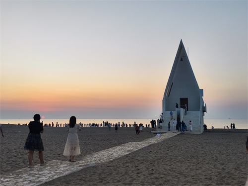 2015年,一条“中国最孤独的图书馆”的视频将阿那亚推上风口,一夜爆红,成为热门旅游地。这座图书馆位于海边,建筑简朴,几经风吹得很苍凉,这也是它“孤独”的由来。
