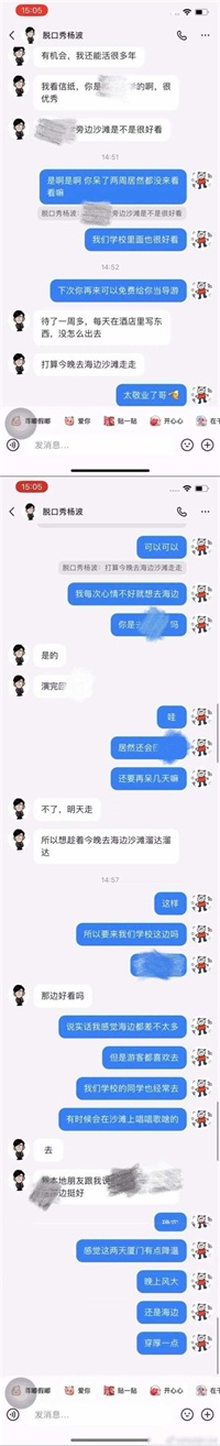 据爆料,杨波在有女友的情况下与一位女粉丝擦出爱情火花。两人的相识过程颇为曲折,始于一场演出。女粉丝在心情低落的情况下选择去看杨波的演出,成为了他的粉丝。礼物、花束、手写信,一系列表白行动让杨波对她产生了浓厚兴趣。私信邀约后,两人在沙滩上漫步,肢体接触逐渐升温,甚至牵涉到了亲吻和酒店回合,将这场八卦升级到了新高度。
