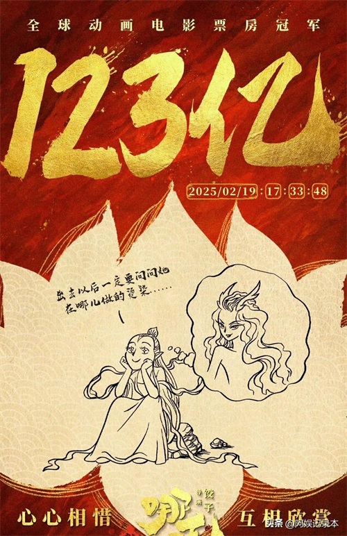哪吒2的票房已经123亿了,登顶全球动画电影榜首。