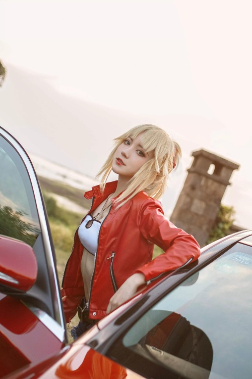 蕾切尔-布罗斯纳罕,红色胸衣拼接网状半身裙穆勒拖鞋,明艳动人...