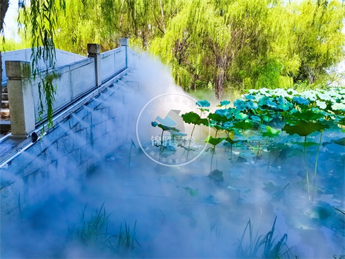在灞桥生态湿地公园中融入雾森系统,让公园静态的山水画面有了灵动的雾气,飘渺的雾气在林间、桥下飘动穿梭,让人仿若置身于仙境。