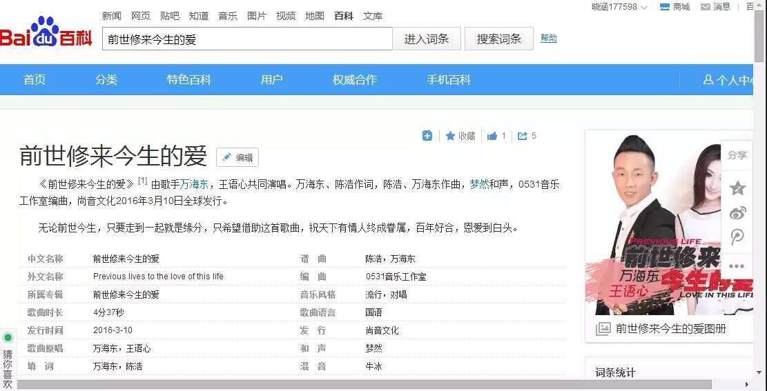 本次歌曲《前世修来今生的爱》,更是与人气女歌手王语心强强联合,为广大音乐爱好者带来听觉的盛宴。让我们支持并期待歌手万海东,下一部作品的诞生。
