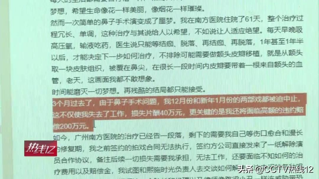 女演员整形失败鼻头坏死,失去工作面临高额违约金,涉事机构被罚49000元