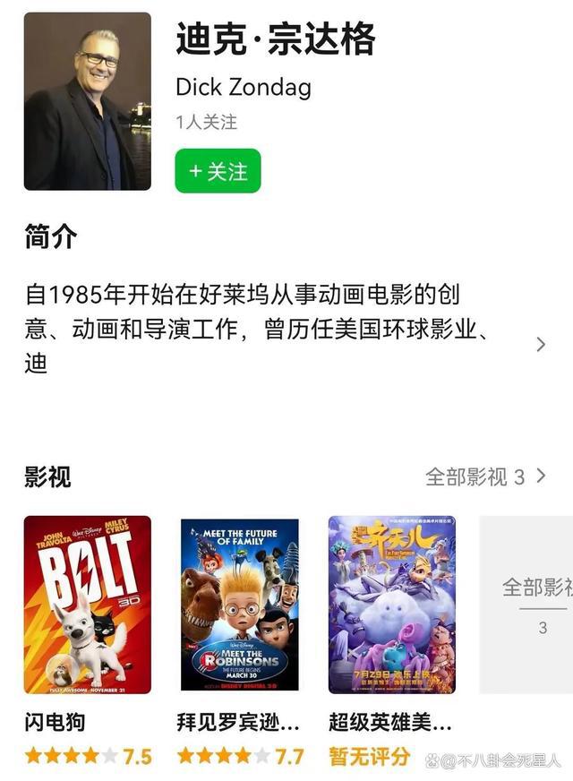 迪克从 1985 年就开始从事动画电影工作,还担任了迪士尼主题公园的创意导演,可以说经验非常丰富。