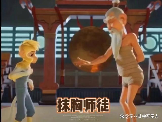 除此之外哪吒成了长满雀斑的西方胖小孩模样,二郎神梳着油头,就连电影中猴子的雕像都是西化的。
