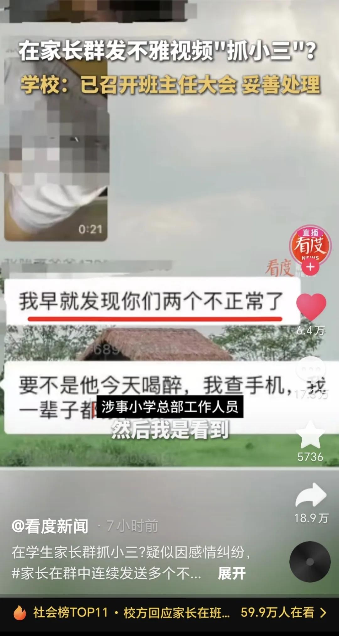 2024年9月14日,福建莆田的某试验小学上演了一场意想不到的“现实版的家长群抓小三剧”,引发了广泛关注。