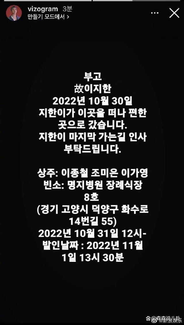 《Produce 101》队友朴熙石、赵晋亨、金道贤等人在社交平台发布讣告,称李智汉去了一个很舒服的地方,希望大家送他最后一程,设灵时间 31 日 12 点,出殡日期 11 月 1 日 13 时 30 分。文中表示,可能灵堂的位置不够,预计明天下午 2 点开始。