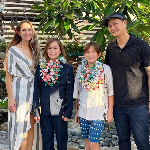 事实上,这是因为他们的妈妈就是外国人。另一张照片中,许冠杰大儿子夫妻俩也露面。