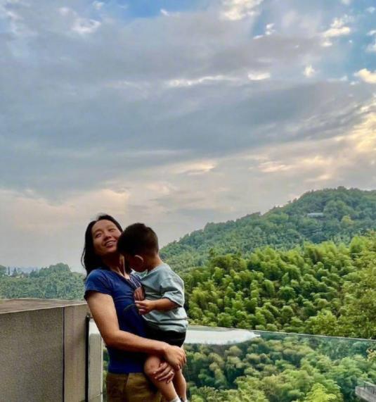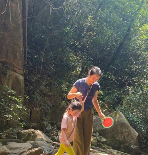 朱丹携家人出游,俩娃紧跟大人太可爱,周一围暖心陪伴