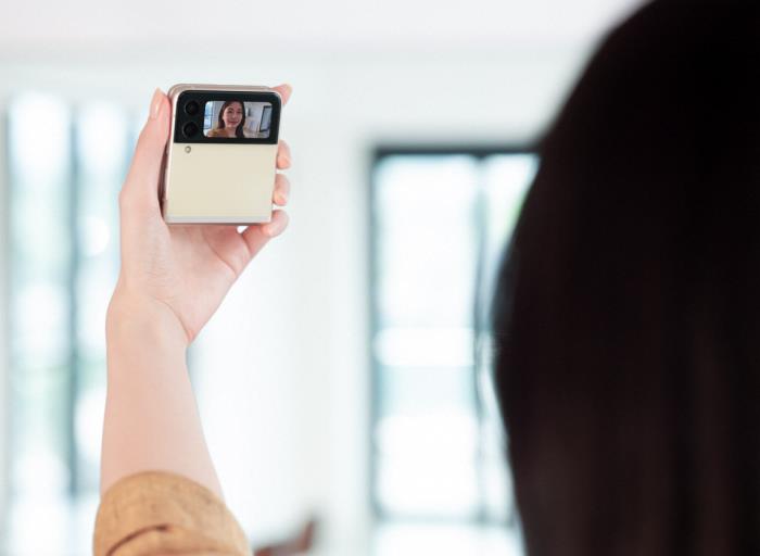 得益于创新的纵向折叠形态,三星Galaxy Z Flip3 5G能够实现多种新颖的使用方式。例如在视频通话时,无需额外支撑即可稳稳立于平面,解放双手。摄影时也可以利用这一特性充当三脚架,稳定机身;或是在自拍时将其设定为倒计时模式或启用手势拍照,无须摄影师辅助也能拍下在场所有好友的身影。