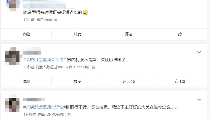 有网友发现,关晓彤造型师现在把微博评论关了。此前采访中关晓彤曾说:”穿衣风格取决于造型师发挥失常还是超常,我会把自己的意见告诉他,如果谁也没法说服谁,最后还是我妥协。“