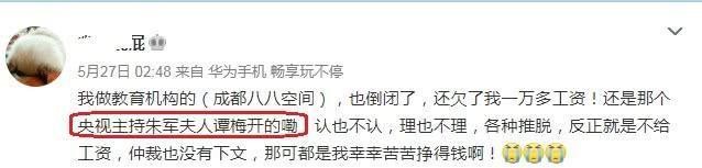 有一位自称是谭梅公司员工的一位老师在社交平台说她一直拖欠员工工资,希望能给了合理的说法。