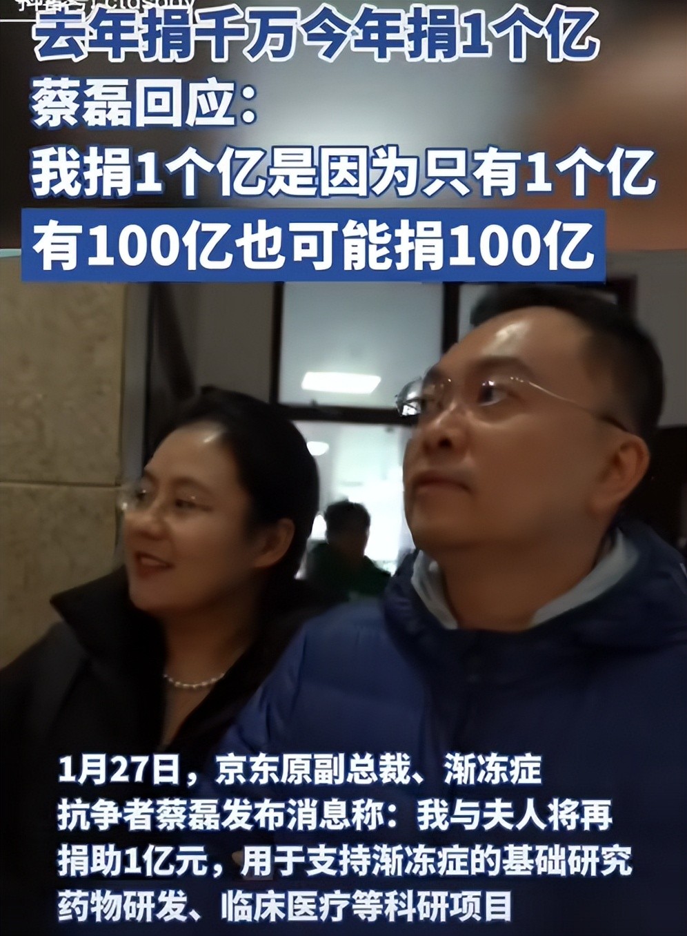 更令人感到敬佩的是在自己被确诊正需要费用治疗时,在研究需要资金的时候,他和妻子也是直接捐出1亿来研究,不管蔡磊有什么决定,妻子也始终支持他。