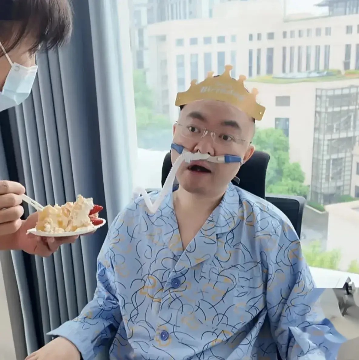 没办法说话就算了,这个病情已经危及到了他的呼吸,每天靠戴着呼吸机延续生命,随后便说到自己非常心疼他。