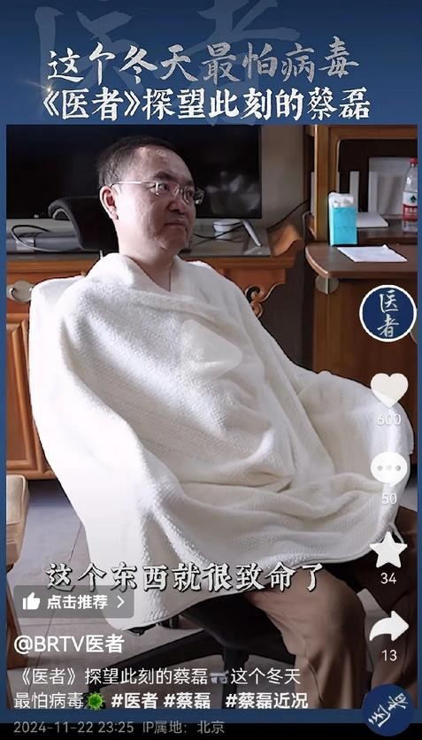 当视频中出现蔡磊的身影时,虽然在几月前他刚刚现身过,哪怕只是坐着身上穿着病服,但看着还算正常。