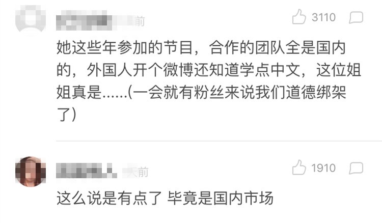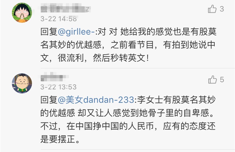 也有网友认为,在明明会讲中文,并且还是上中国真人秀的情况下,这么简单的中文都不肯说,非要说英语,那就是在秀优越感了。