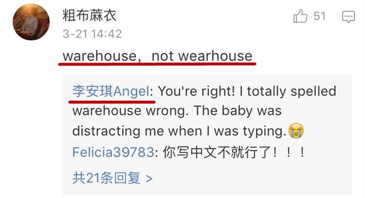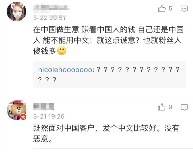 大家也不是无理取闹故意挑刺,只是觉得说什么语言是你的自由,但是你卖中国的产品,又卖给中国人,为什么就不能用中文宣传呢?