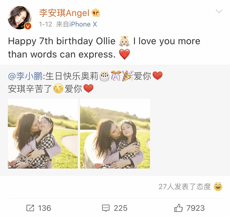 刚开始大家没觉得什么,毕竟李安琪从小出生在美国,父母都在美国定居,和李小鹏在美国相恋完婚,包括两个孩子都是在那边出生的。