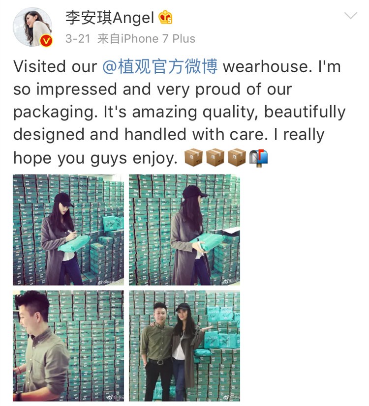 那是2017年,李安琪开始在国内“创业”,会时不时在微博上发一些推广广告,然而这些广告也全部都是英文,甚至发完微博后,品牌官博还要帮她翻译一下: