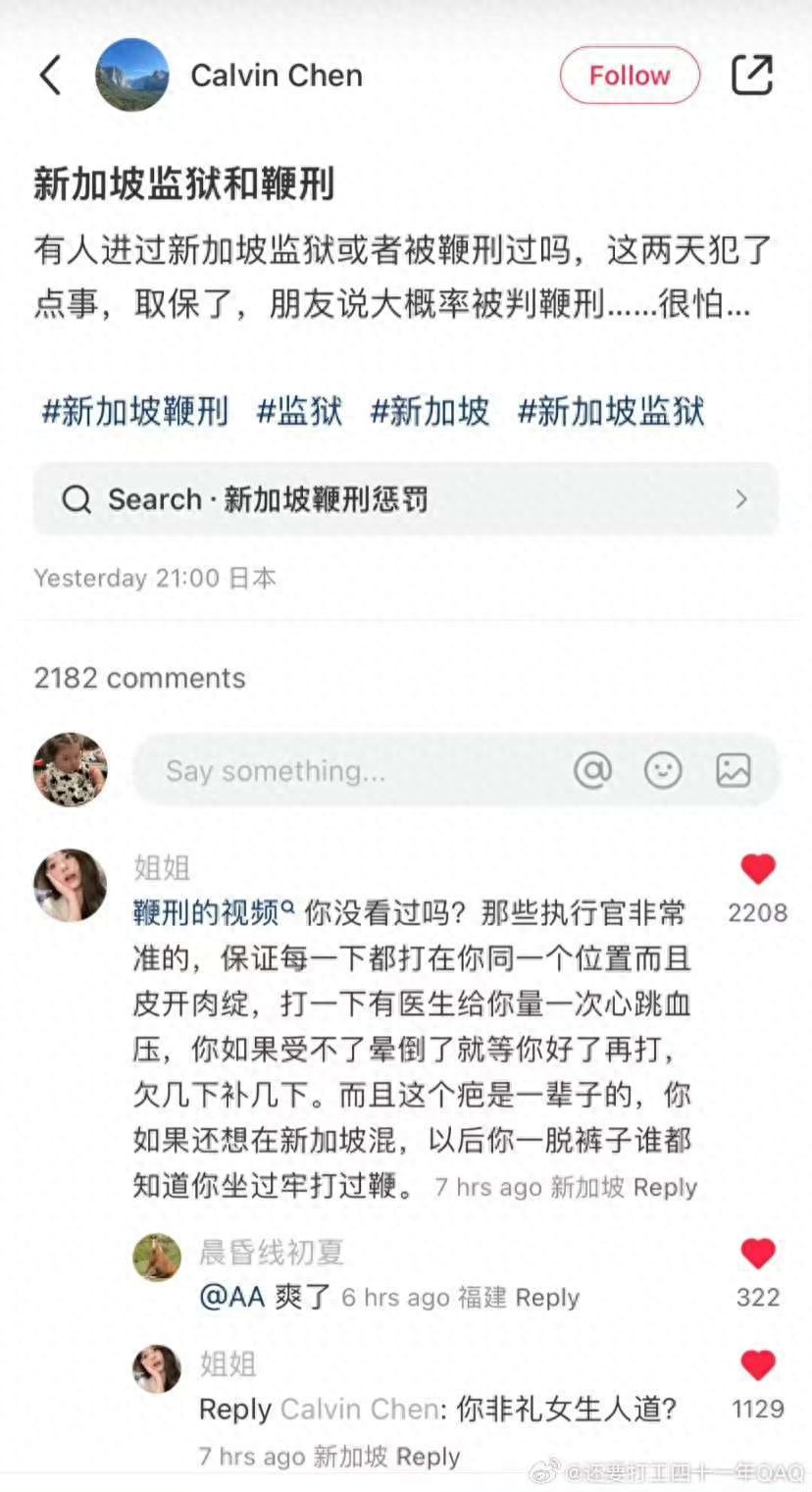新加坡鞭刑有多恐怖?网友求助反被嘲