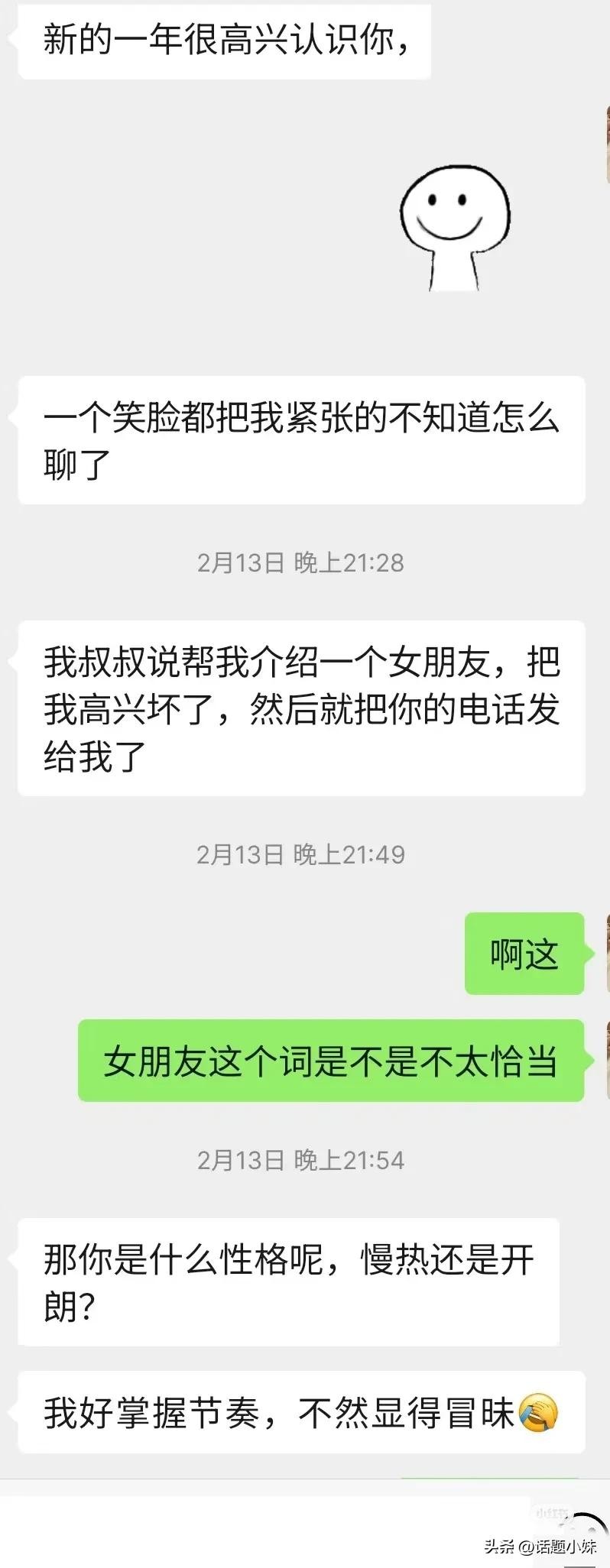 过年的时候,家里介绍了一个相亲对象,到现在为止大概认识才几天时间了吧。每天都对我嘘寒问暖的,目前我还不是他的女朋友,至少他还没通过我的考验吧。不过他真以为介绍相亲对象就是发配女朋友,因为他就是这么说的,我给否认了。
