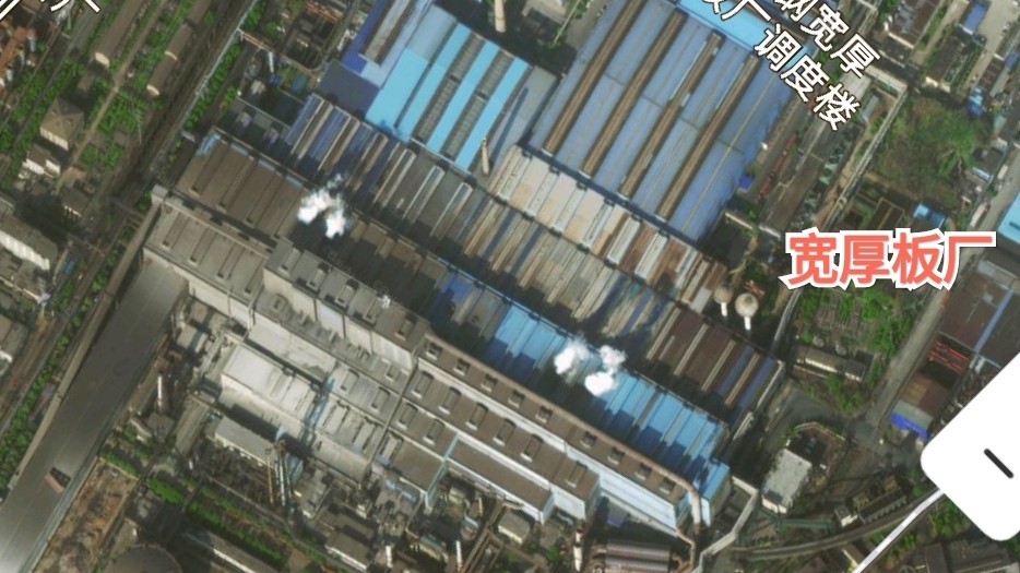 高炉区域沿着长江展开,炼钢轧钢区域斜往西南方向延伸。