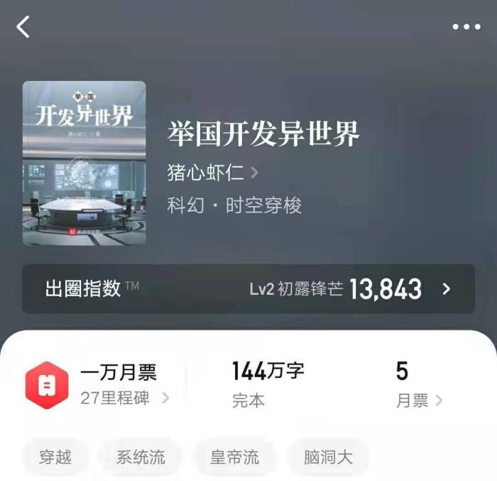2.《举国开发异世界》作者:猪心虾仁