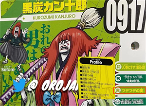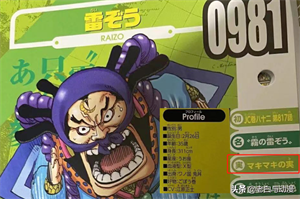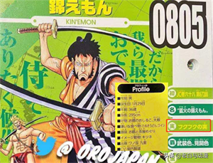 锦卫门的生命卡之前也公布,恶魔果实名为【服服果实】,可以用树叶/石头进行变装,此外生命卡还公布了锦卫门拿的两把刀名字:助参、角参。