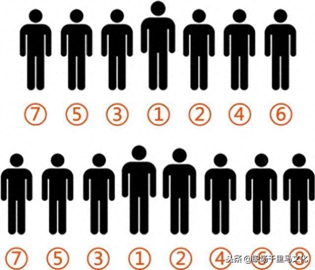 合影时的位置安排与会议主席台座位安排是一致的。可参见下图的座次排列:
