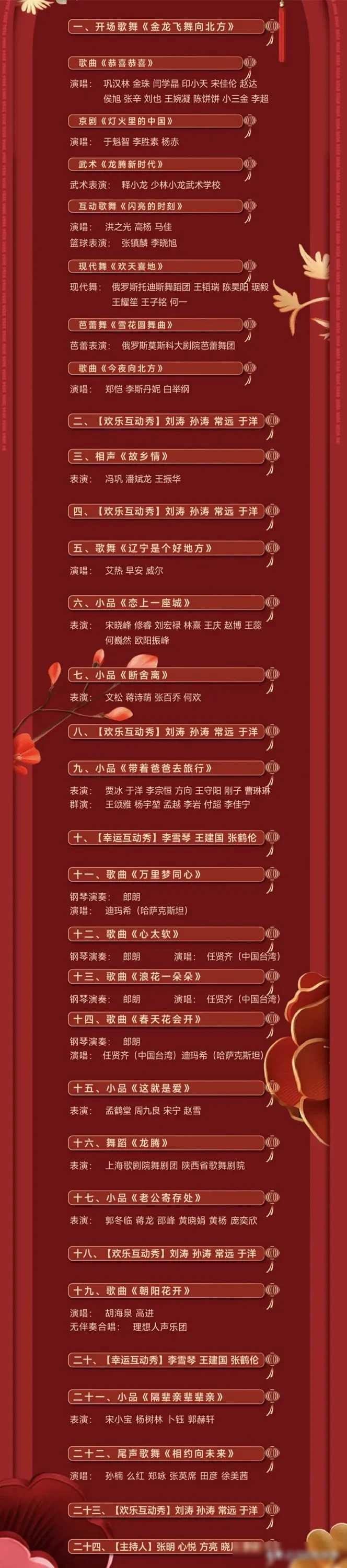 今晚辽视春晚节目单热乎出炉!马上发给大家,一共24个节目,语