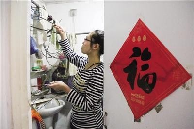 李娜正在晾晒衣服、整理家务