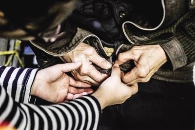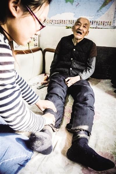由于年纪大了,李老眼神稍有不好,李娜会耐心地为其系好扣子