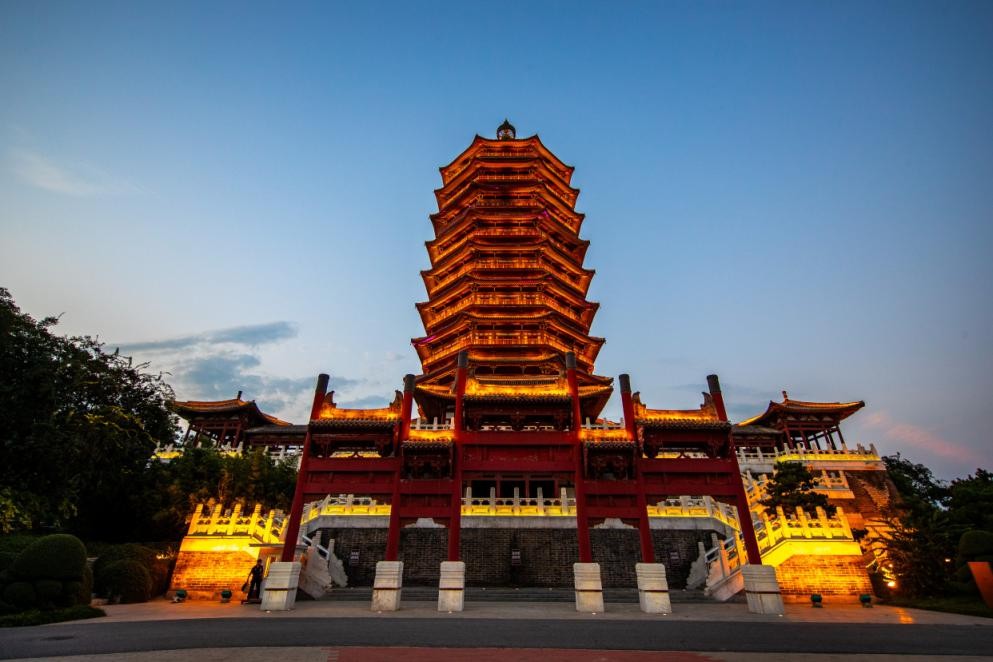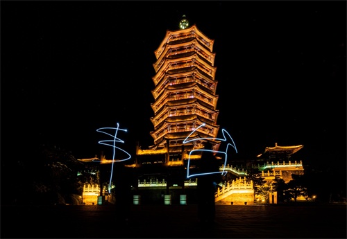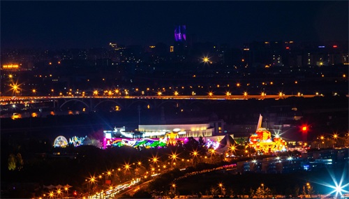 永定塔,作为第九届中国(北京)国际园林博览会的标志性建筑,以其辽金风格的八角九层外观,矗立在鹰山之上,成为丰台区的地标性建筑。在灯光的映衬下,永定塔的层层重檐更显庄重肃穆,金碧辉煌的塔身在夜空中熠熠生辉。随着“京彩灯会”的开幕,丰台区的旅游热度持续上升,有游客用手机灯光在空中留下“丰台”的印记,通过社交媒体分享他们的独特体验,使得丰台区成为北京新的旅游地标。
