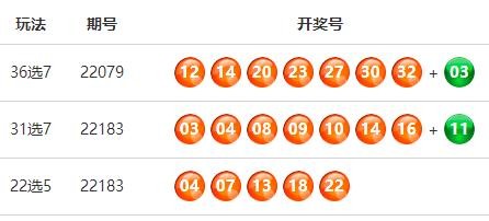 中国体育彩票福建31选7第22183期开奖公告