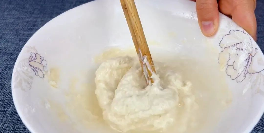 - 100g面粉 + 60ml凉开水,搅拌成浓稠面糊
