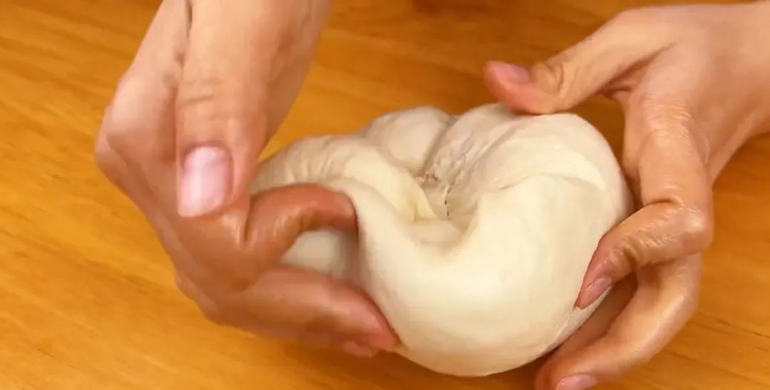 然后翻过来把面剂搓圆,搓成一个小馒头的形状,这样一个生坯就做好了。