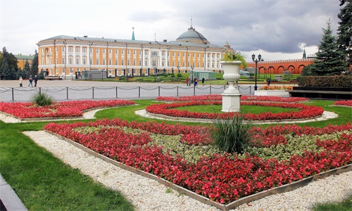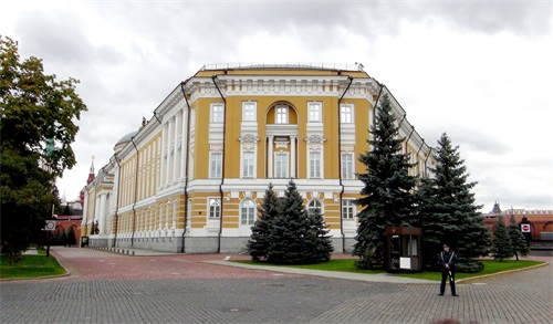 克林姆林宫,是位于莫斯科市中央行政区特维尔区的一个建筑群,这里历史上曾是俄国沙皇的皇宫,现在是俄罗斯总统和国家领导人的办公地点。整个建筑群大致呈三角形,南临莫斯科河,西接亚历山大花园与无名烈士墓,东临红场。最初的克里姆林宫是一个不大的木结构城堡,十四世纪下半叶改为白石墙。现今的红砖宫墙建于1485年至1495年,总面积27.5万平米,宫墙全长2235米,高5到19米不等,厚3.5至6.5米,宫墙四周矗立着外观各不相同的20座塔楼,高矮圆方各不相同、还有16角形的。克林姆林宫分成政府办公区域以及游览区,政府办公区域不对游客开放,办公区和游览区之间划有白色标志线,绝不可以跨越。