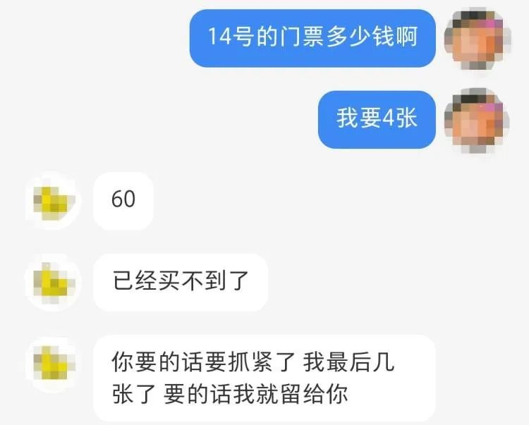 记者询价后发现,原本30元的门票翻倍成60元,线上黄牛还告诉记者,“肯定买不到线下票,到了线下更贵”。