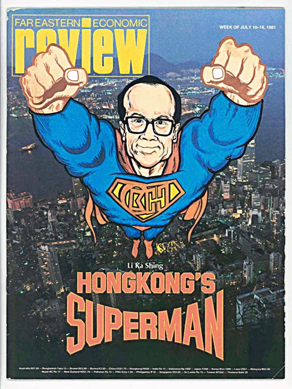 1981年,李嘉诚稳居香港十大华资财团之首,盖过了位居第二名的包玉刚爵士,也正因如此,1981年7月,《远东经济周刊》用李嘉诚作为国际版封面,并冠以“Hong Kong‘s Superman”(香港超人)的称号,“李超人”之名便是由此得来。