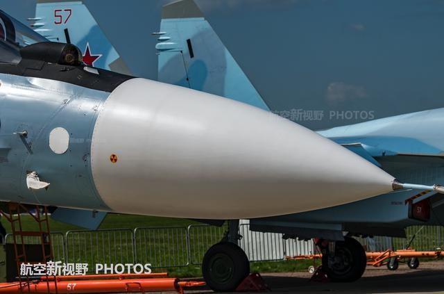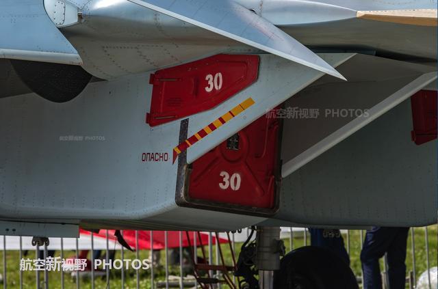 苏-30SM战机机体细节特写,可能看到雷达罩打开的方式与传统苏式战机相比,并没有做过多的修改。
