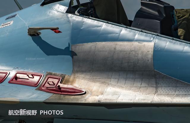 苏-30SM战机机体蒙皮又一个角度特写,感觉整体工艺水平比我们想象得好。